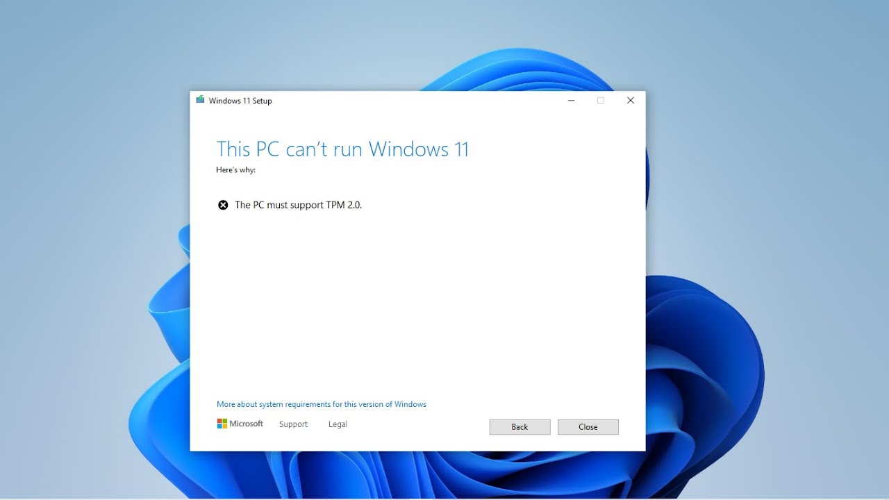 How to fix this pc can't run windows 11 while bootingподробнее. There is possibly just display the this pc can't run windows 11 error. Tpm 2.0 windows 11 error. What causes the pc can't run windows 11 error? .install windows 11 may find they're met with an error stating that this pc can't run windows 11 what is tpm 2.0 and why can't i install windows 11.